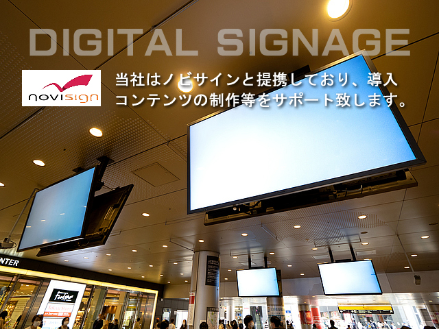 ![]() 当社は「Novisign(ノビサイン)」のサイネージシステムの導入・運用をサポートいたします。 Novisignはドラッグアンドドロップで簡単にコンテンツの作成が出来るクラウド配信型のデジタルサイネージソフトウェアです。 Youtubeや画像・動画、スライドショー、SNSなどの様々な機能を使って動きを作り出すことで、より訴求効果の高い広告を作り出すことが 可能です。クラウド配信型なので一括配信や管理も非常に簡単です。 |